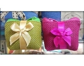 กระเป๋าใส่เหรียญมินิ ผ้ากระสอบ พร้อมโบว์และป้ายชื่อ