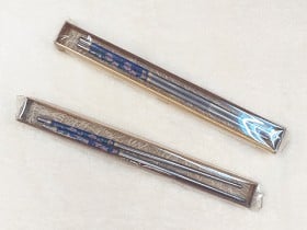 ตะเกียบสแตนเลส ในกล่องไม้ คาดโบว์ พร้อมป้ายชื่อ