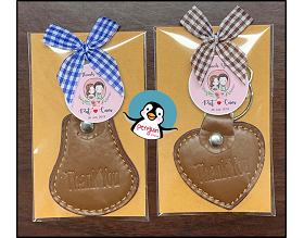พวงกุญแจหนัง PU รองกระดาษคราฟท์ ใส่ถุงใส ติดโบว์ พร้อมป้ายชื่อ