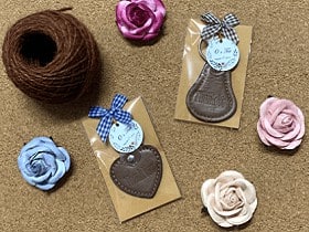 ที่เปิดขวดทอง ใส่ในถุงใส พับพัดปากถุงด้วยริบบิ้น พร้อมป้ายชื่อ